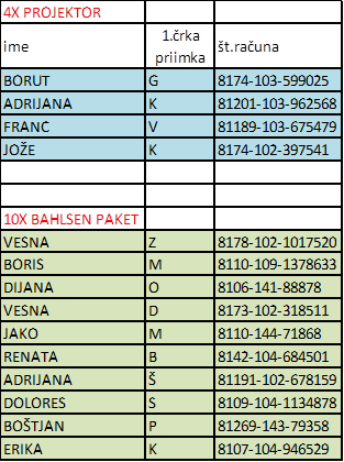 Zaradi varovanja osebnih podatkov je navedeno samo ime in začetna črka priimka. V izogib nejasnostim so izžrebanci iz nagradne igre obveščeni tudi po mejlu.